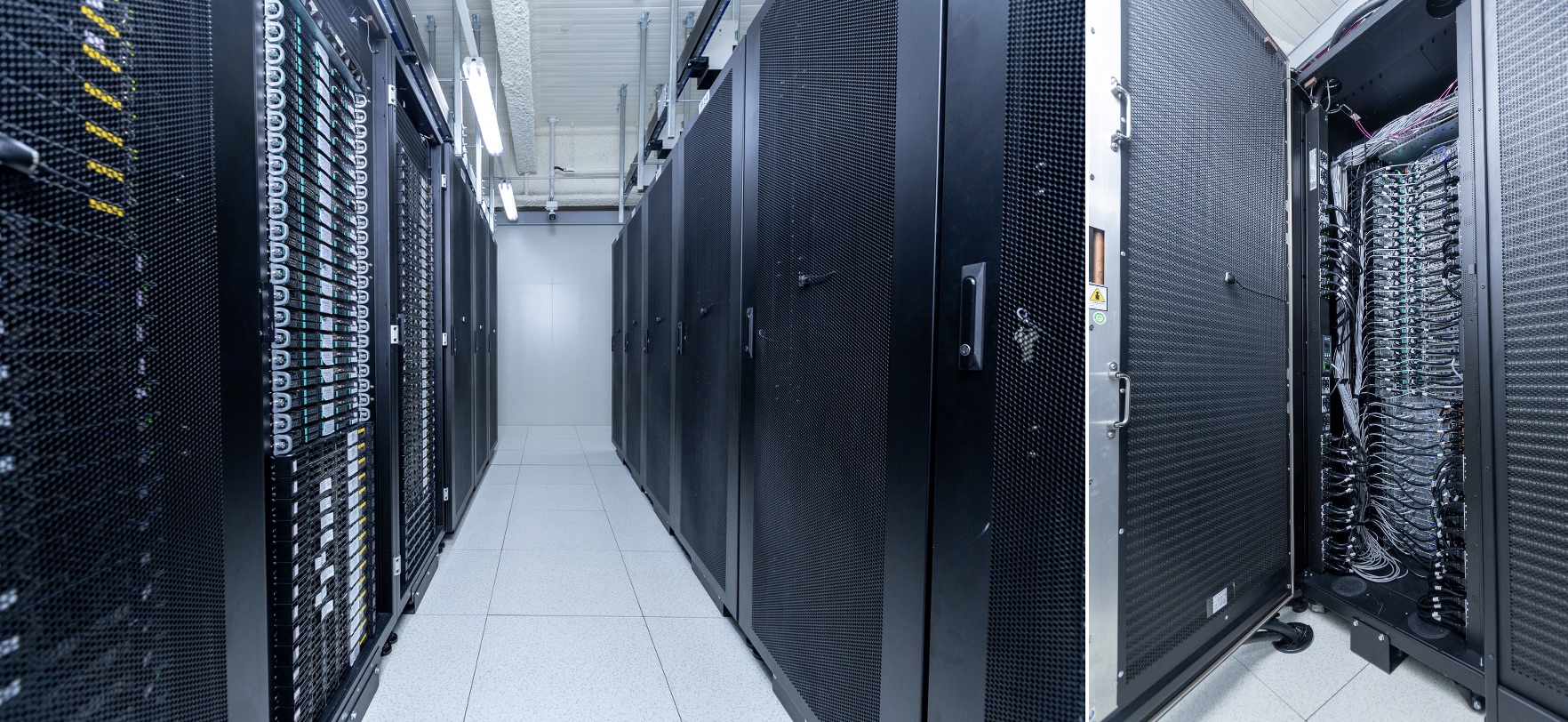慧榮主機房配置高速運算與 AI 設備,採水冷背門散熱並預留直接水冷的升級彈性;次機房以精密空調承載較低耗能主機。此混合式設計可有效處理高算力散熱,並提升單櫃用電效率與坪效,避免擴損與熱干擾。